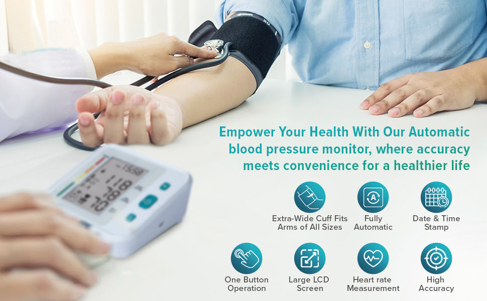 Panmedical DME Assured Pressure monitor, With inflation pump, Cuff band, 4 AAA batteries, and an instruction manual for use. A reliable and portable device used to detect irregularities in heartbeat to provide exact blood pressure readings.