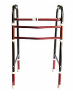 Walker Plain is ergonomically shaped. Released handles make this walker easy to open and close. Durable, lightweight anodized MS frame. The buffers at bottom eliminate noise and provide strong floor grips. The one push button allows walker to be folded to compact storage and transport.